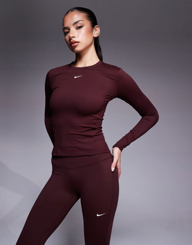 One Training Dri-FIT Fitted Long Sleeve Top In Burgundy