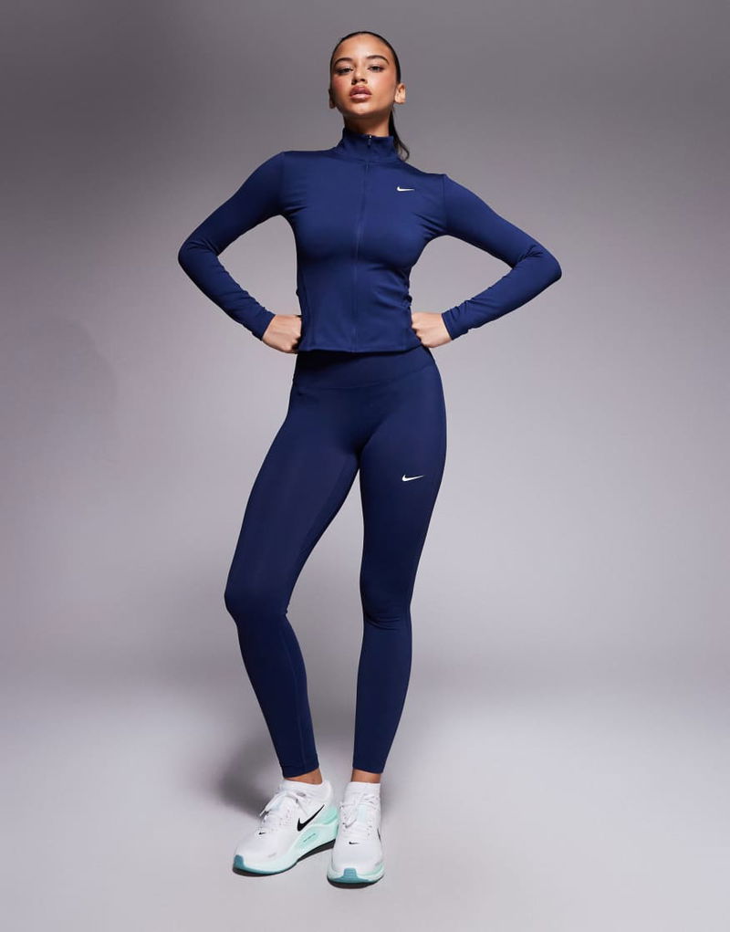 One Training Dri-FIT Full Zip Fitted Long Sleeve Top In Navy