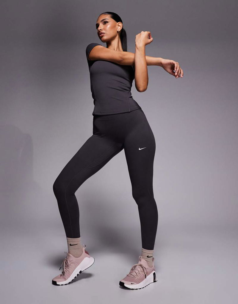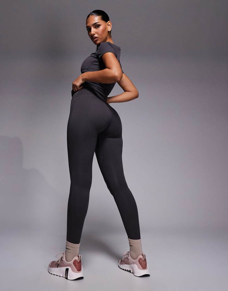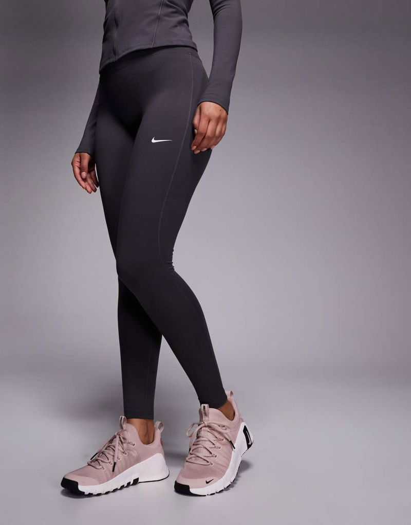 One Training Dri-FIT Seamless Front High Waisted Leggings In Grey
