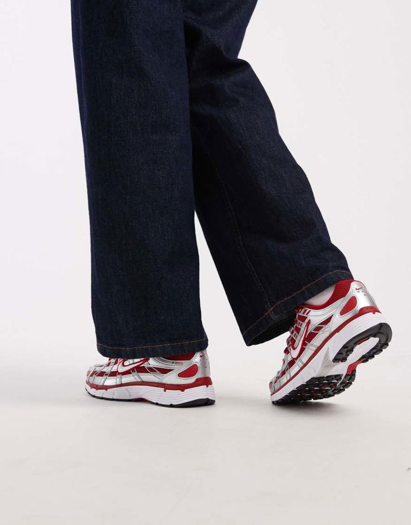 P-6000 Unisex Trainers In Silver And Red