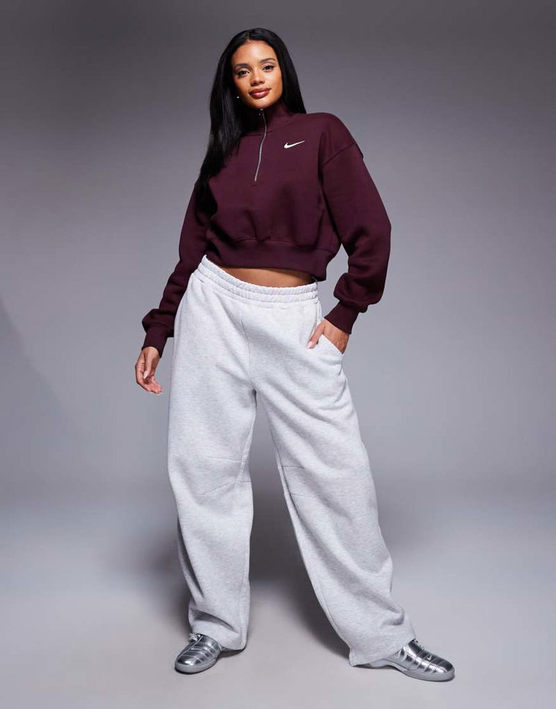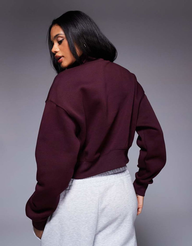 Phoenix Fleece Half Zip Cropped Sweatshirt In Burgundy