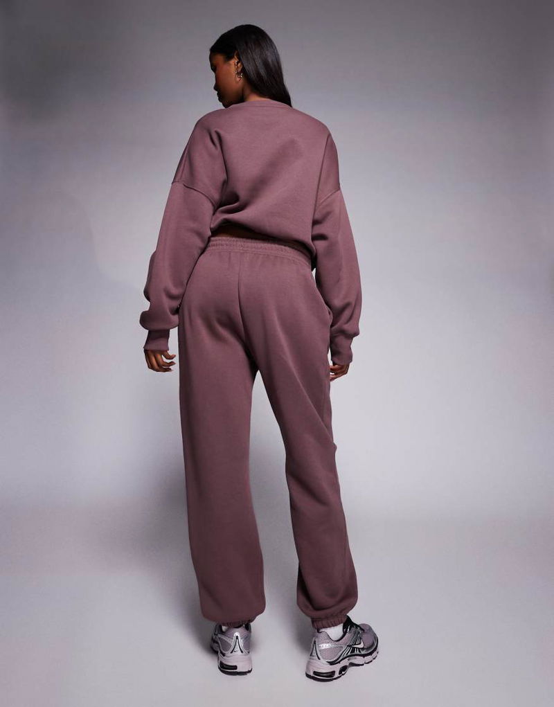 Phoenix Fleece High Waisted Oversized Cuffed Joggers In Dark Purple