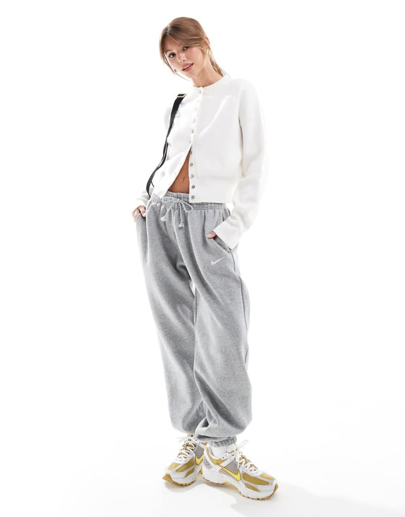 Phoenix Fleece High Waisted Oversized Cuffed Joggers In Grey