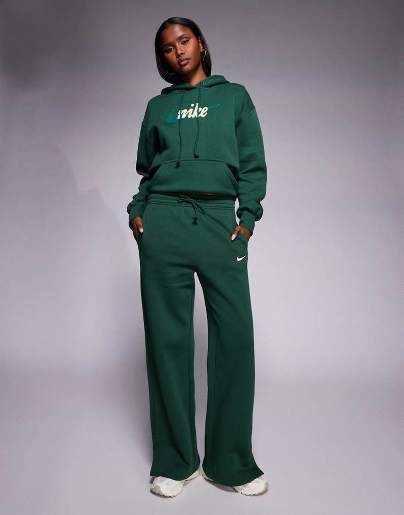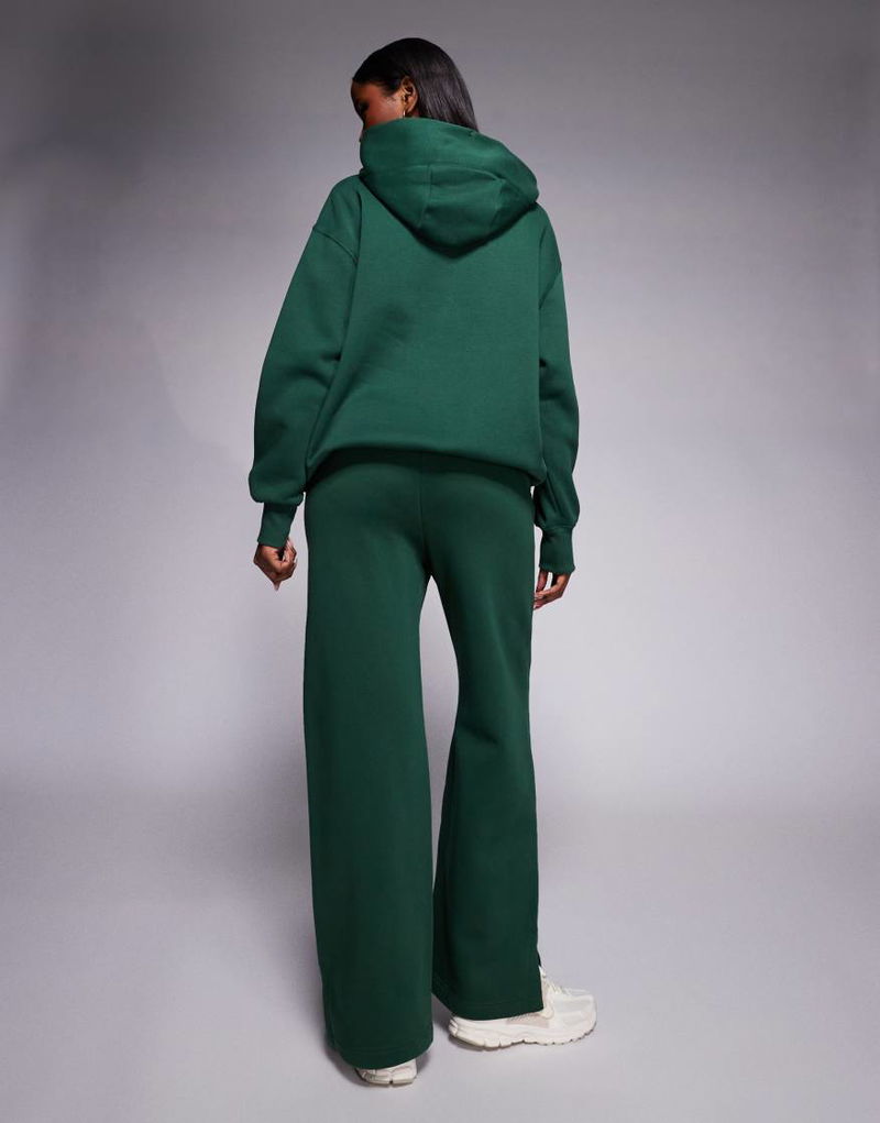 Phoenix Fleece High Waisted Wide Leg Trouser In Green