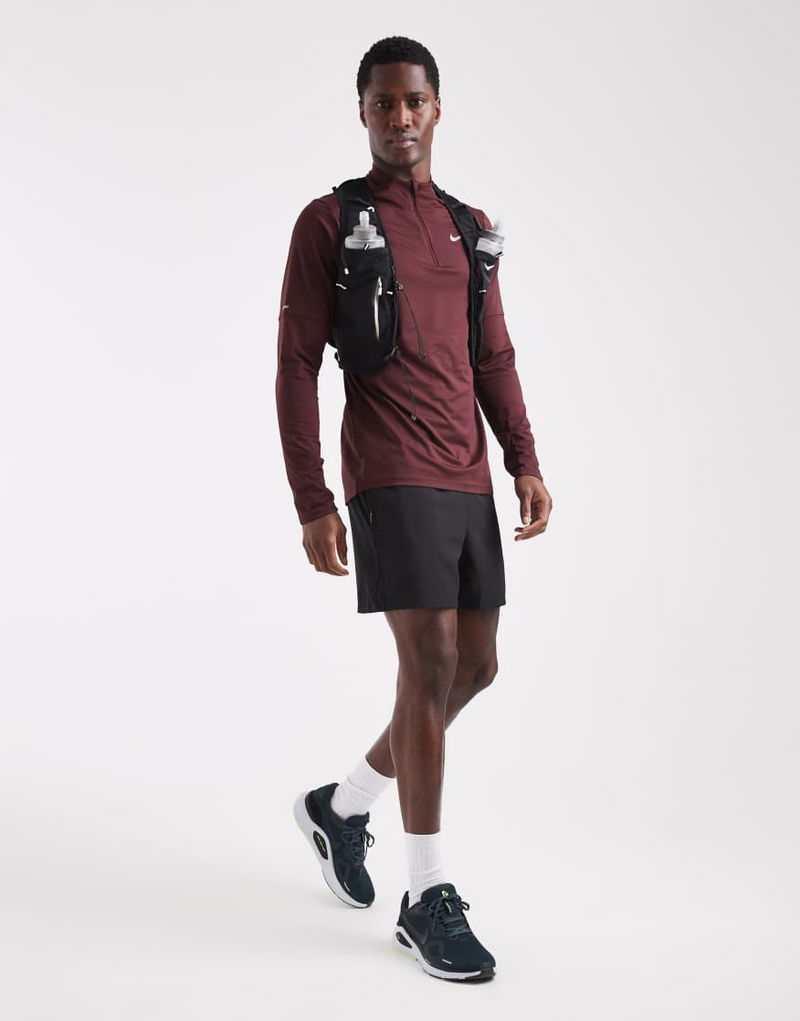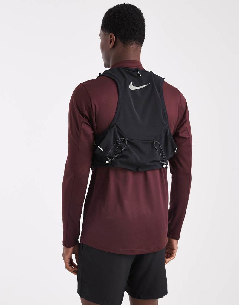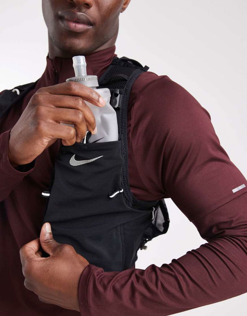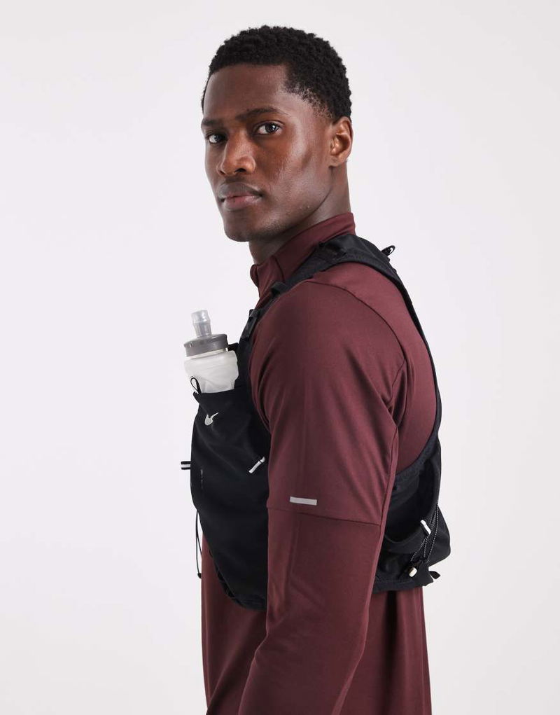 Branded design. Two collapsible water bottles. Bungee cord adjustments. Multiple storage pockets