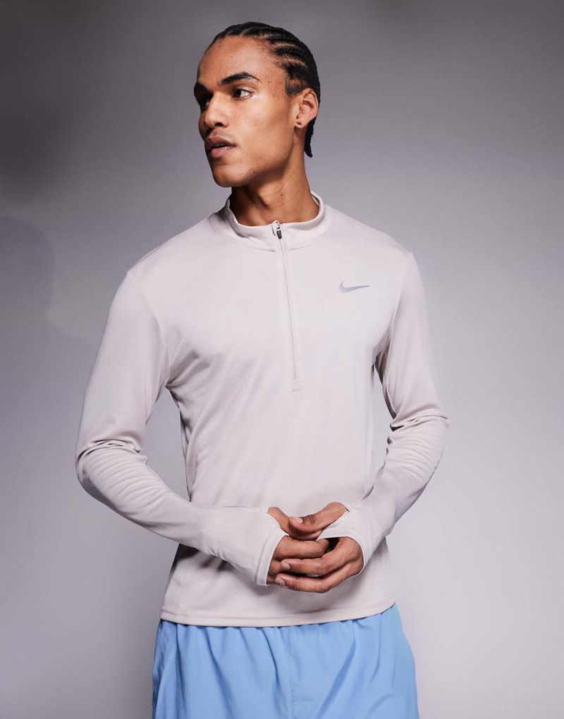 Running Pacer Dri-FIT Half Zip Long Sleeve Top In Light Grey