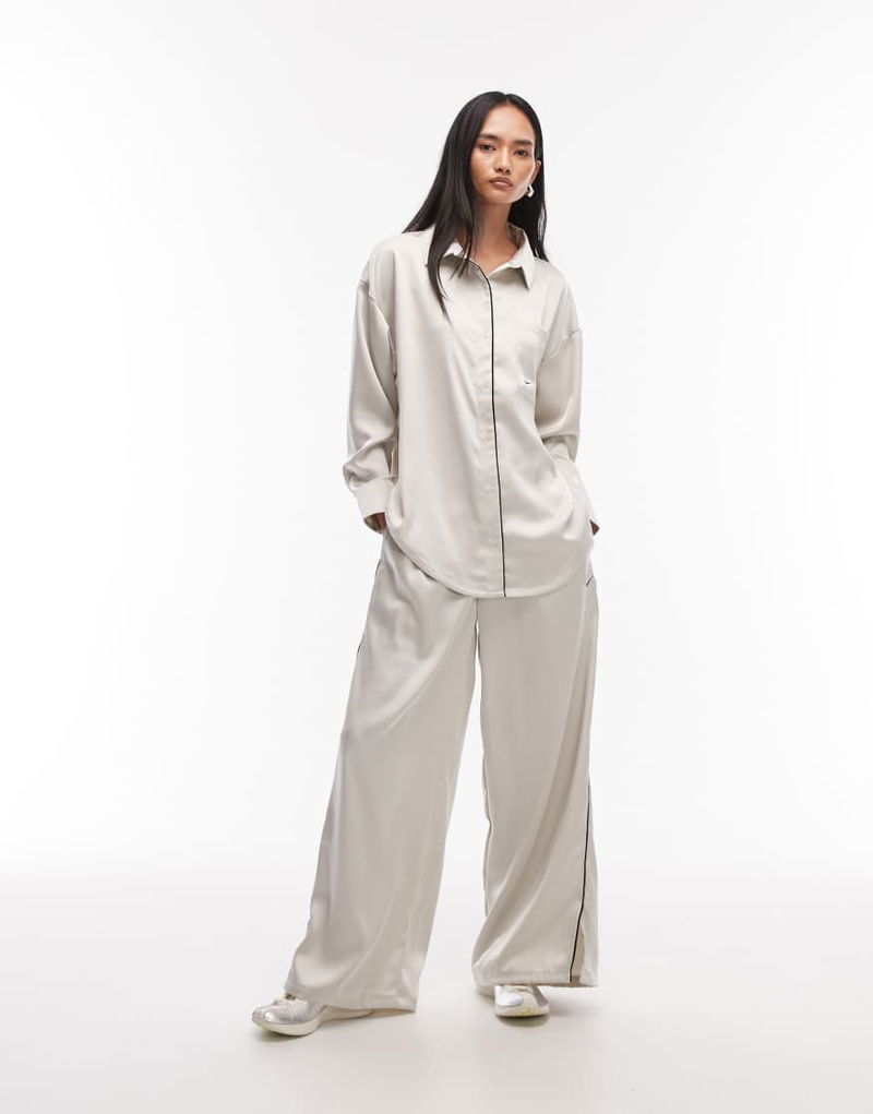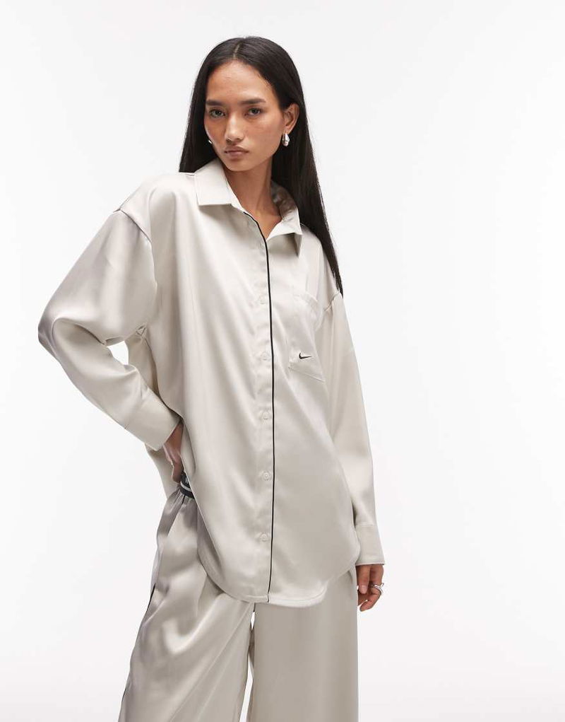 Satin Long Sleeve Shirt In Off White