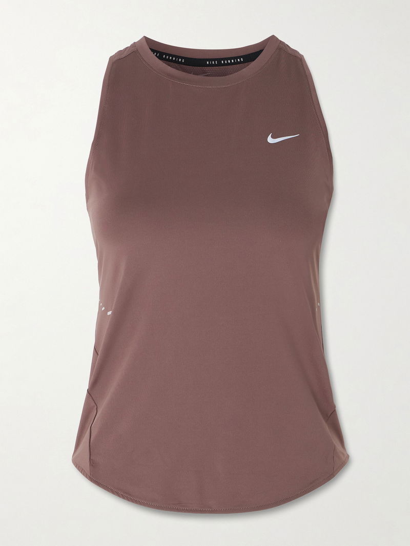 Nike's 'Swift' tank is developed with insights from runners to ensure optimum comfort. It's made from lightweight and breathable Dri-FIT paneled with mesh at the back for enhanced airflow. Note the tapered waist and reflective 'Swoosh' logo.