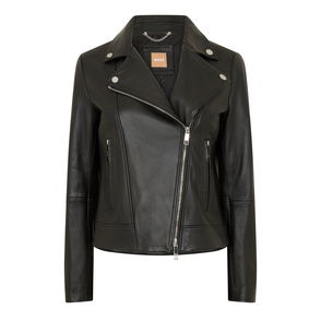 Coat, Leather, Two side slit pockets, Fully lined, Button fastenings through front, Supple, non-stretchy leather.
