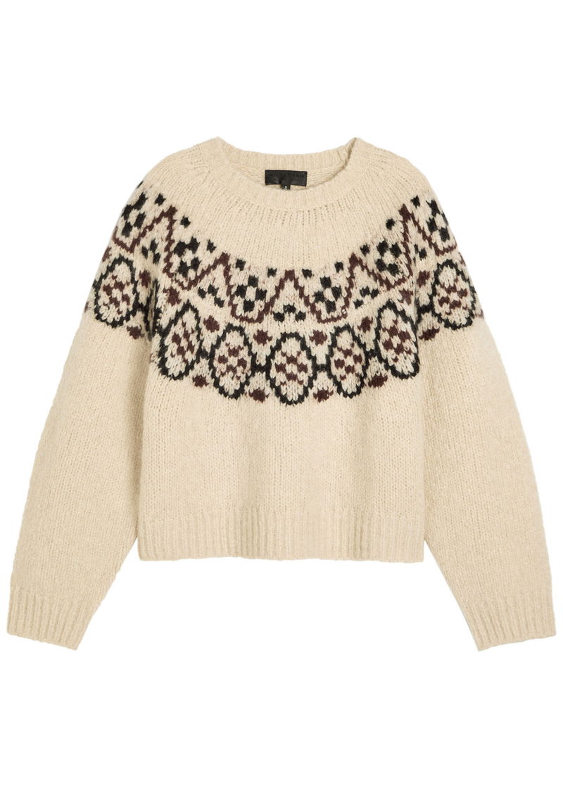 • Fair Isle inspired pattern, crew-neck, raglan sleeves, ribbed trims