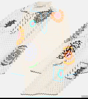 Dress, Crochet, Side slits, Button-fastening keyhole at front, Lightweight open knit.