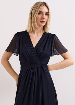 Keep the styling as effortless as the design with barely-there sandals, Gown, Silk-satin, Crossover straps, Side slits, Curved hem, Slips on, Mid-weight, non-stretchy fabric.