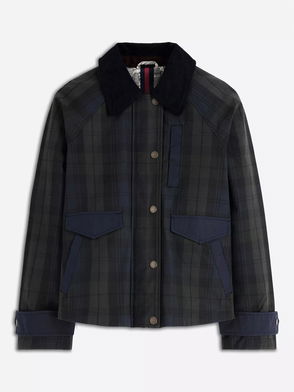 Camouflage, woven, cotton-blend jacket. With buttoned tabs, buttoned cuffs, four front flap pockets, concealed snap and zip fastenings through front and fully lined.