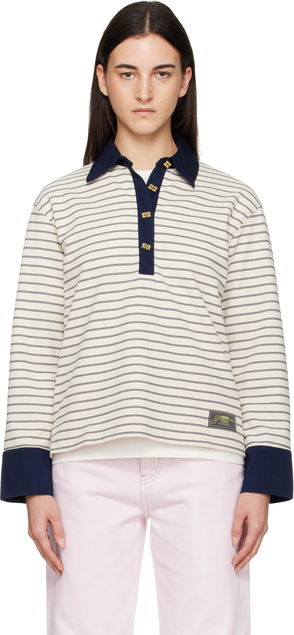 Polo shirt, Jacquard-knit, Cotton-blend, Button fastenings along front, Mid-weight open knit.