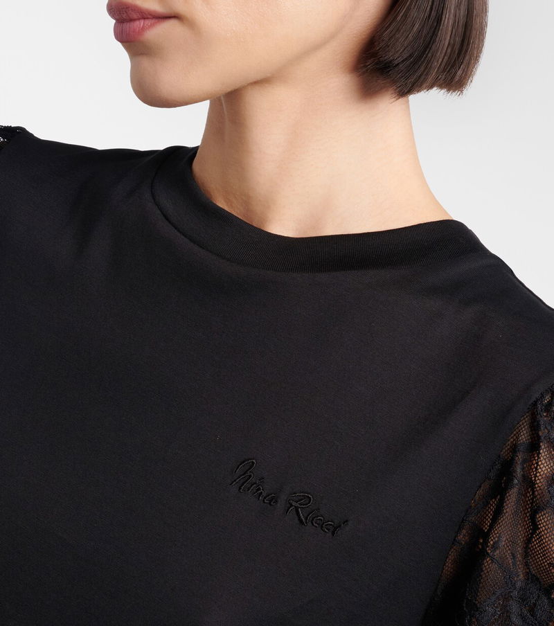 Embroidered Lace-trimmed Cotton Jersey T-shirt