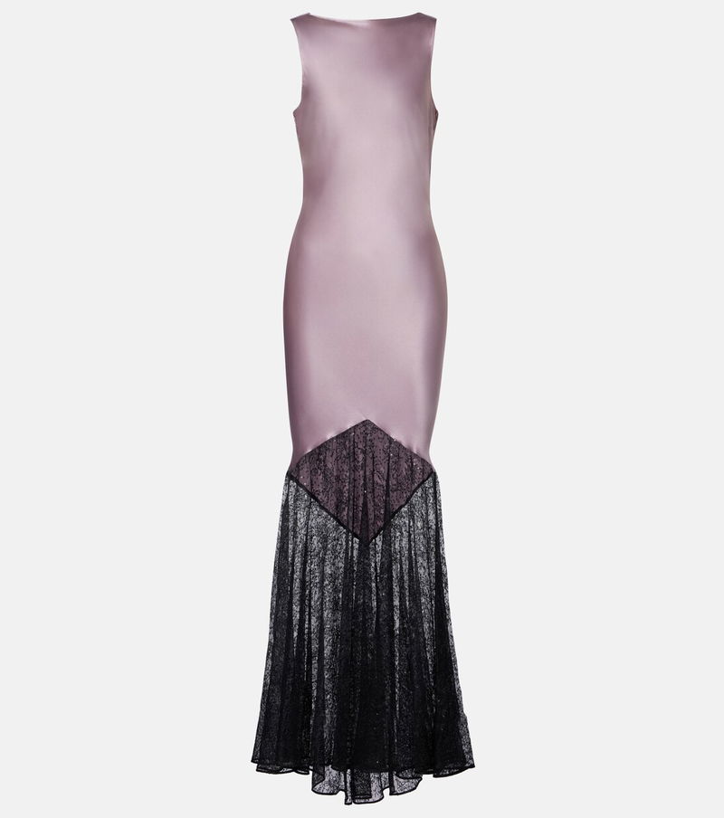 Silk-Blend Shirred Full-Length Dress + Strap Topaz Blue
