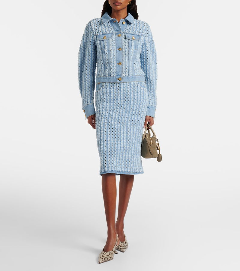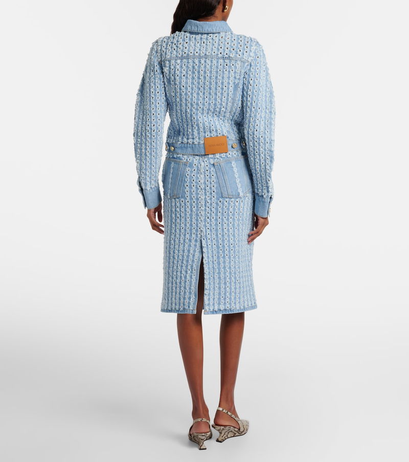 Striped Denim Pencil Skirt