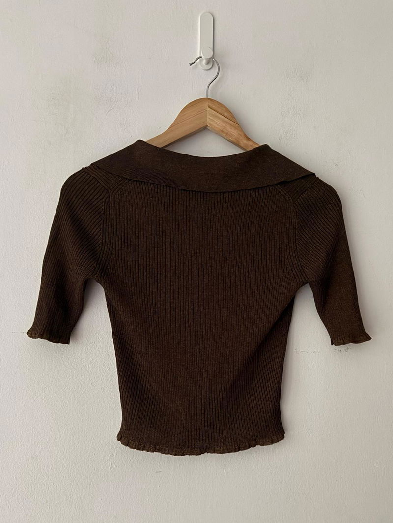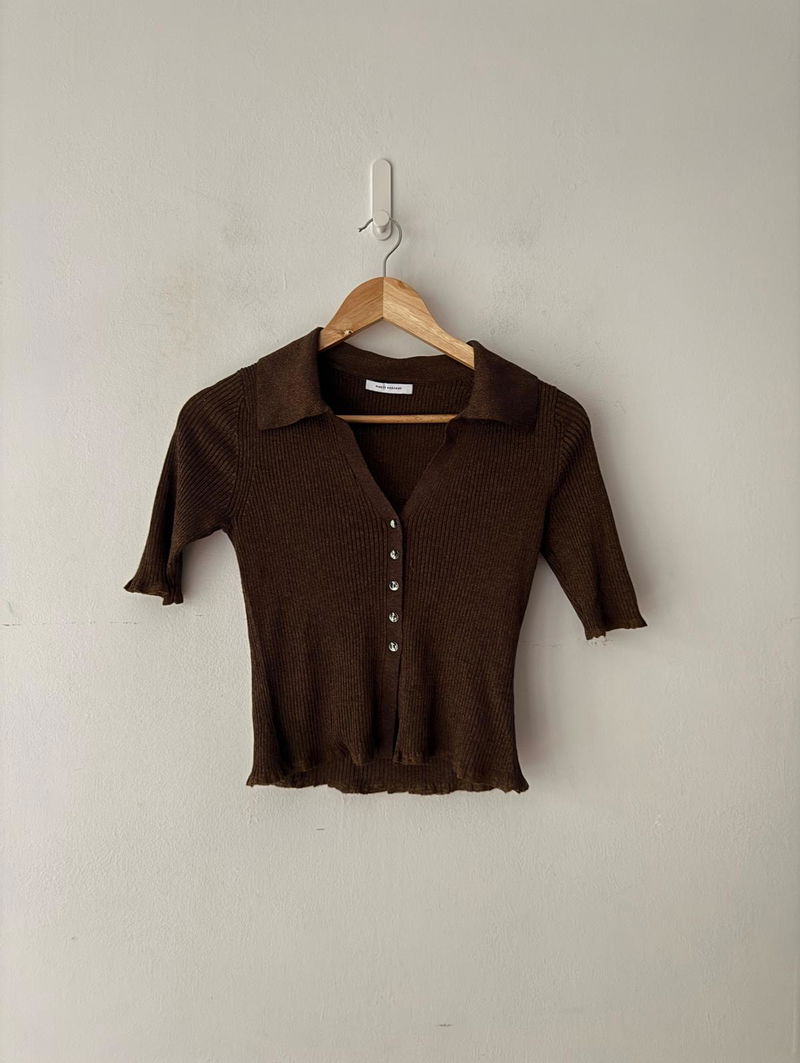 Short sleeve ribbed sparkle button through knitted top. Perfect when teamed with smart trousers or your favourite jeans.