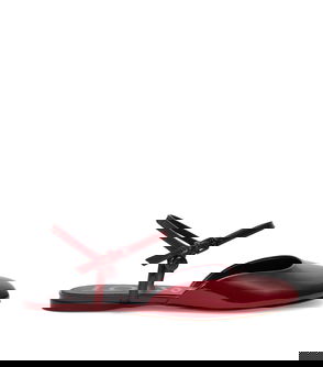 Designed by Alohas and tapping into the black cherry trend, these burgundy ballerina flats are crafted in sleek leather. They feature V-cut vamps, bow tie fastenings, and a square toe.