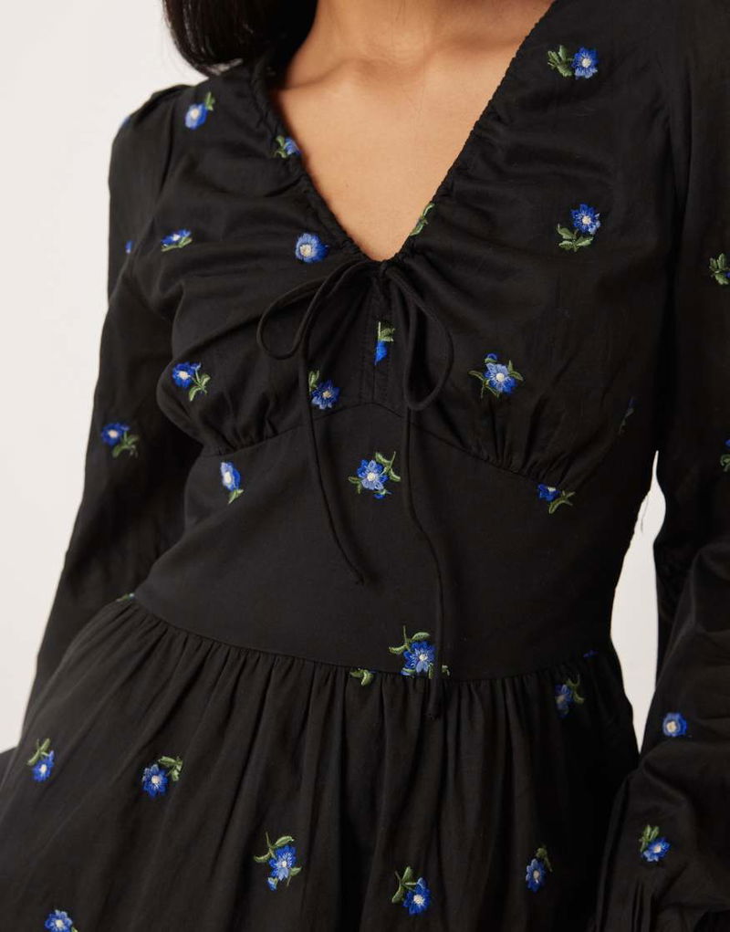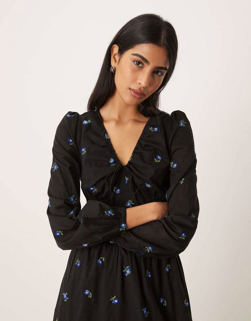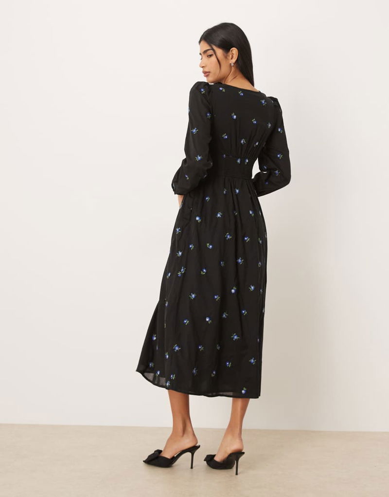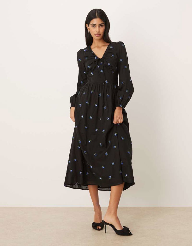 Alysia Embroidered V Neck Midi Dress In Black Floral