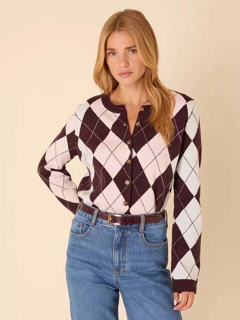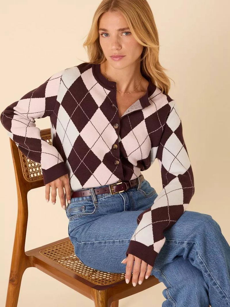 Designed in argyle, this cardigan features a round neck and button-down detailing. We love its slim-fit too.