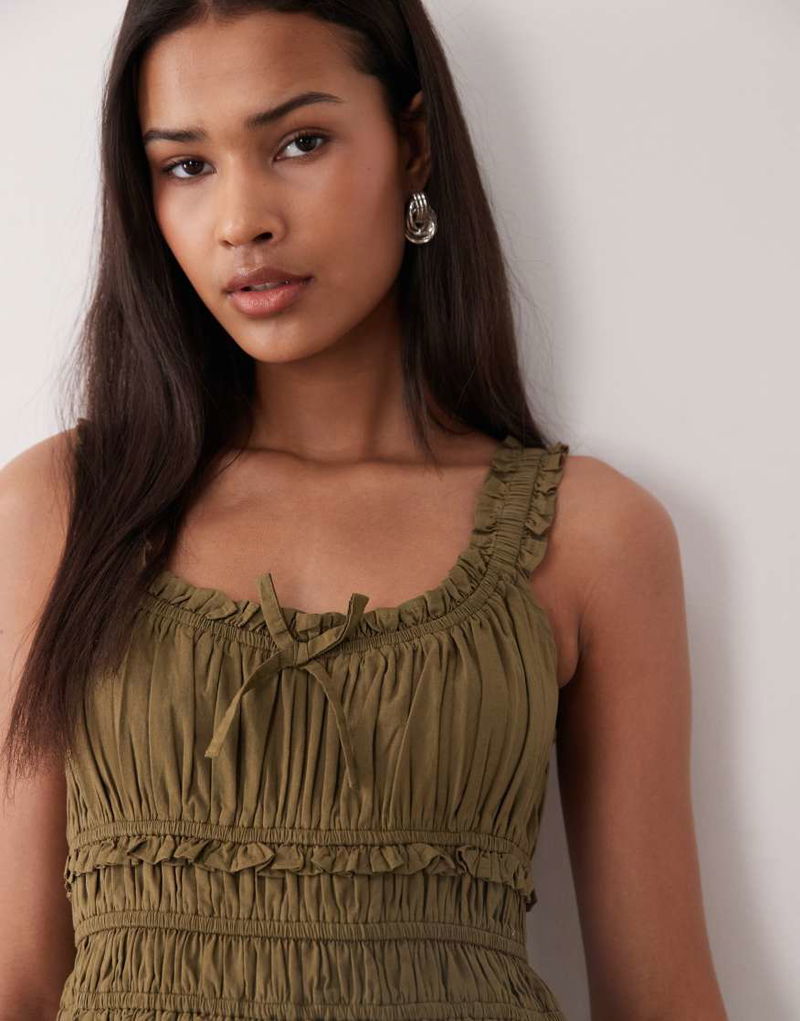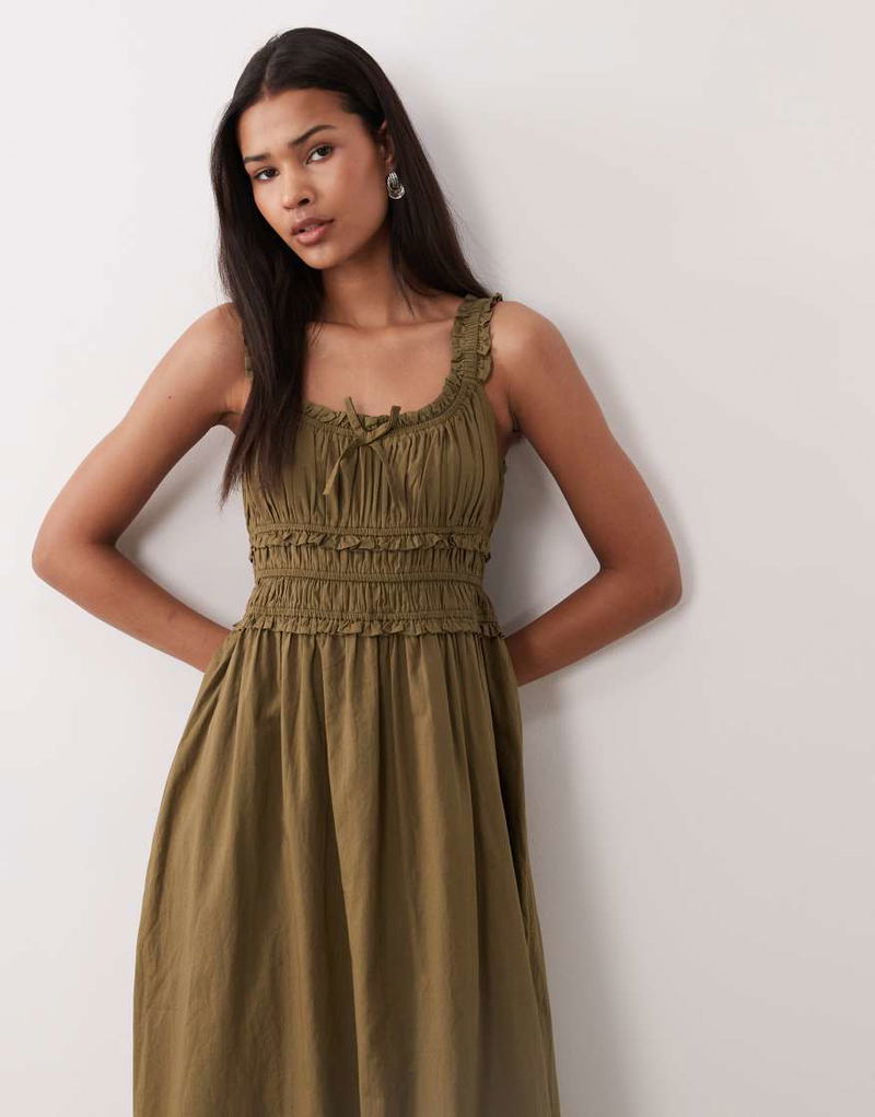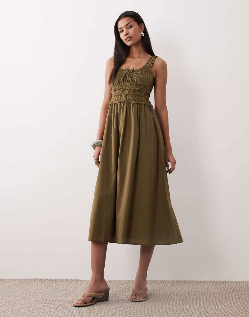 Ariel Midi Dress In Khaki Green