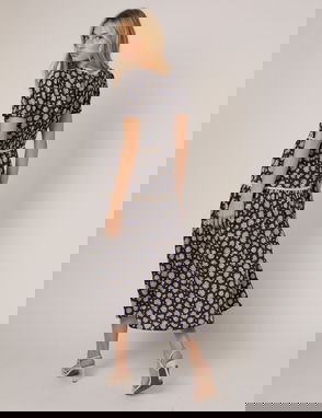Ariel Ruffle Detail Midi Dress In White And Blue Floral