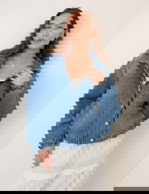 Mid-season layering Quilted design Baseball collar Press-stud placket Side pockets Boxy fit.
