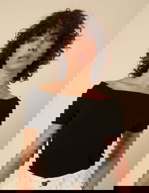 This black bandeau top is designed with a satin bust overlay. Cut to a slim fit, the seams add a polished, tailored feel.