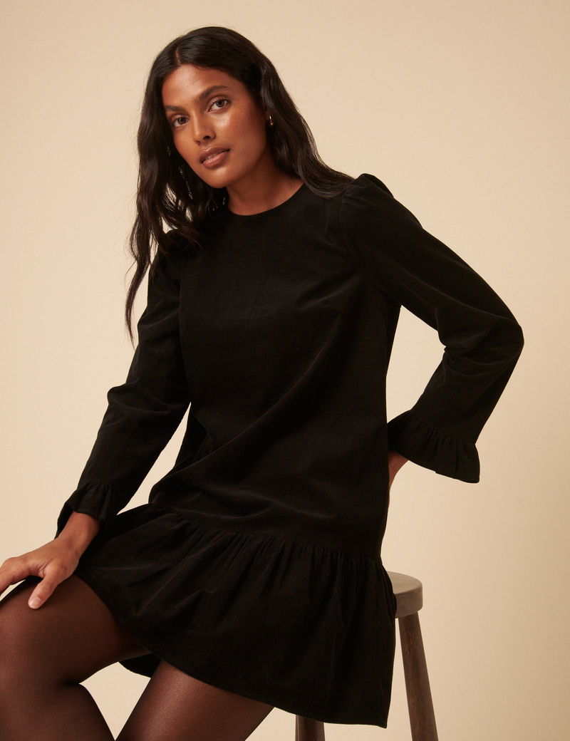 Black Cord Long Sleeve Tiana Mini Dress