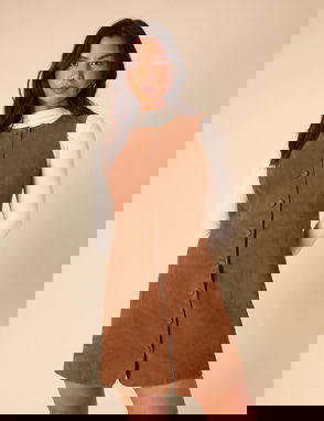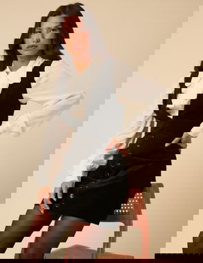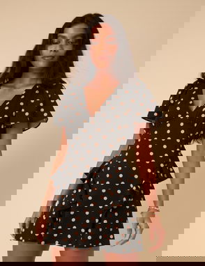 Coming in soft black cord with red polka dots, this pinafore mini dress is designed with a round neckline and side buttons through the skirt for a wrap-style look. It's cut to a softly shaped shift silhouette.