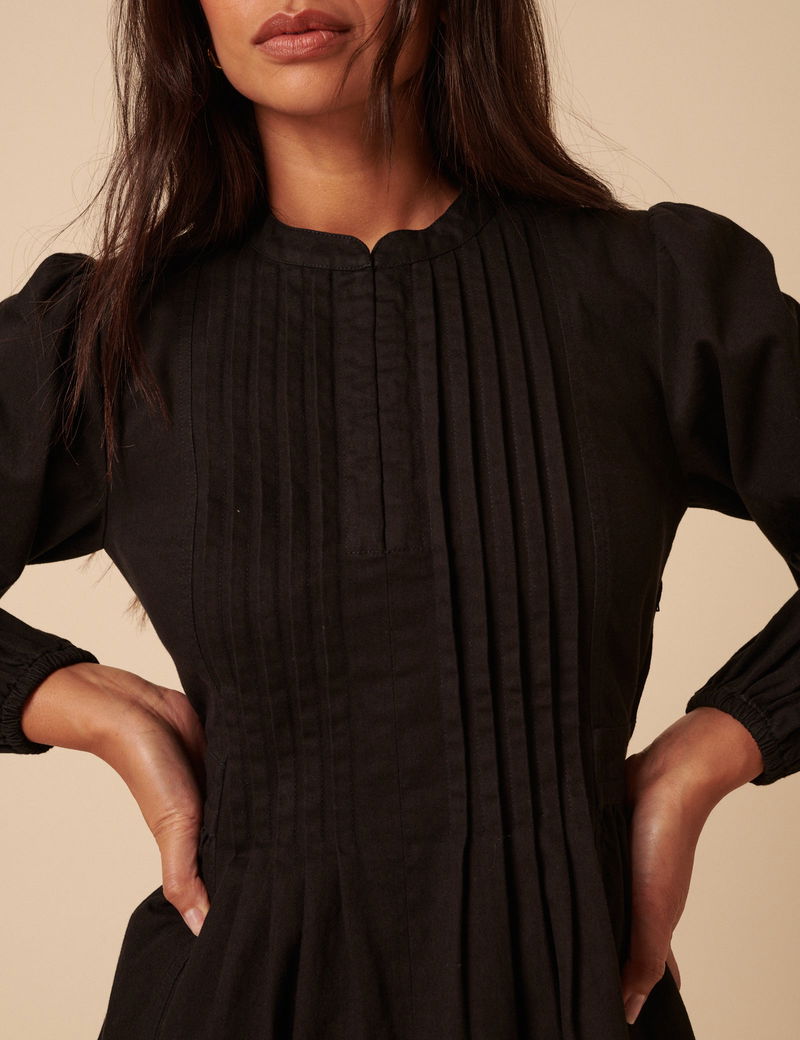 Black Denim Pintuck Tillie Mini Dress