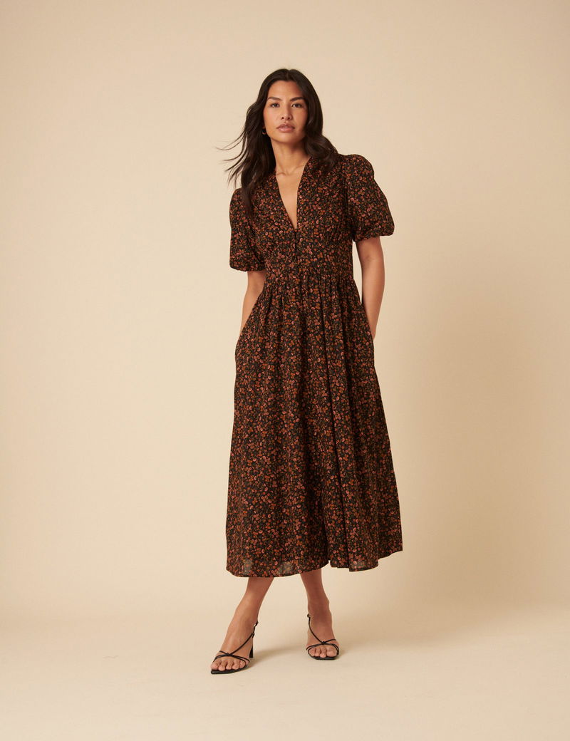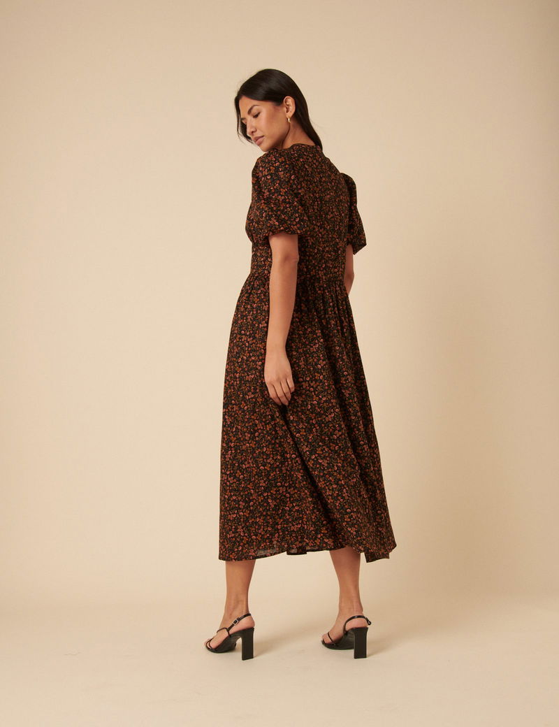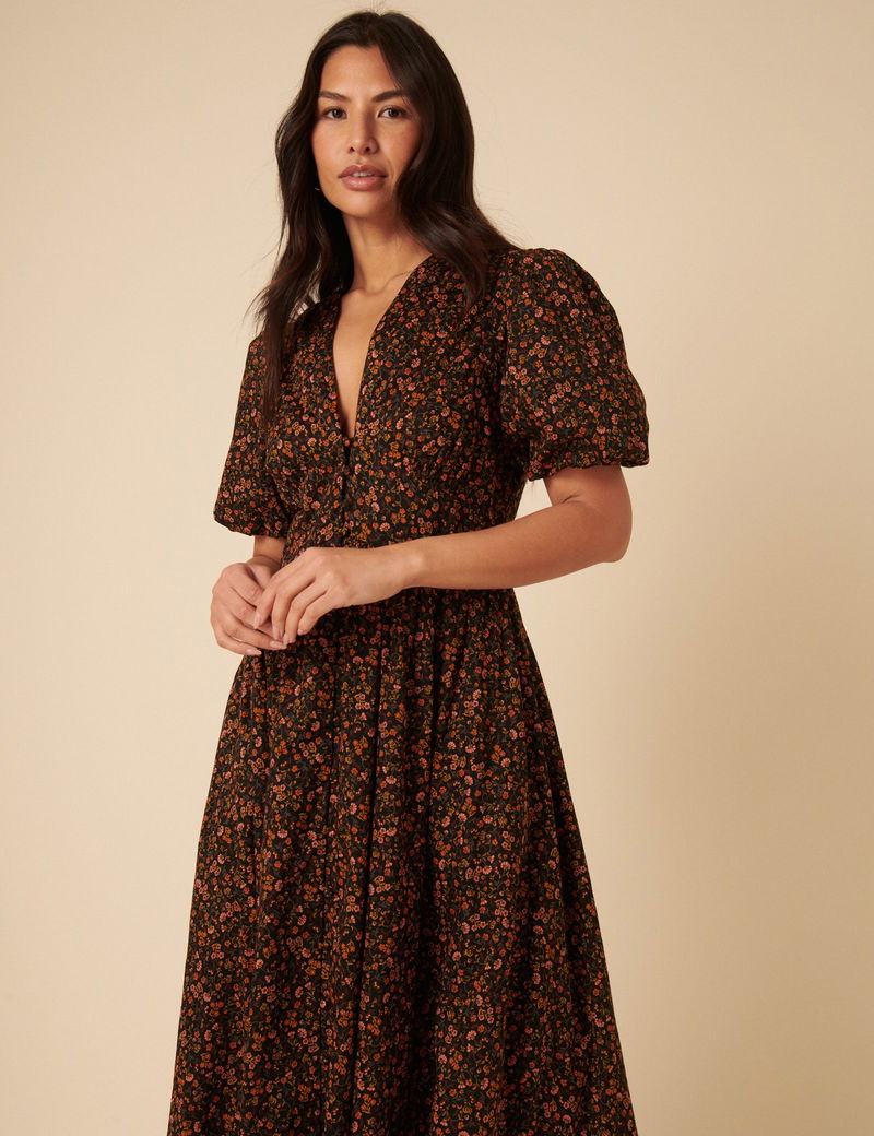Black Ditsy Foral Starlight Midi Dress