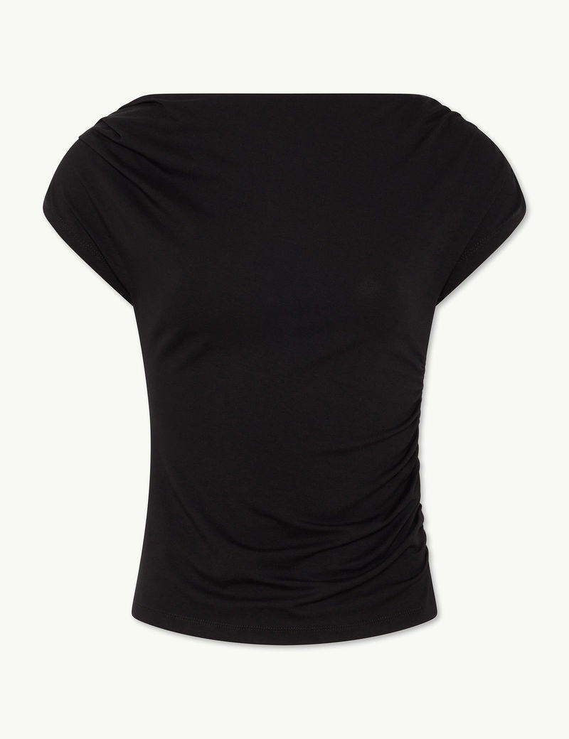 Black Draped Off Shoulder Jersey Top