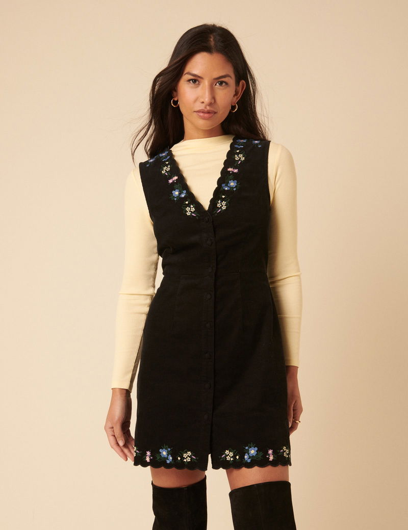 Black Embroidered Cord Leone Pinafore Mini Dress