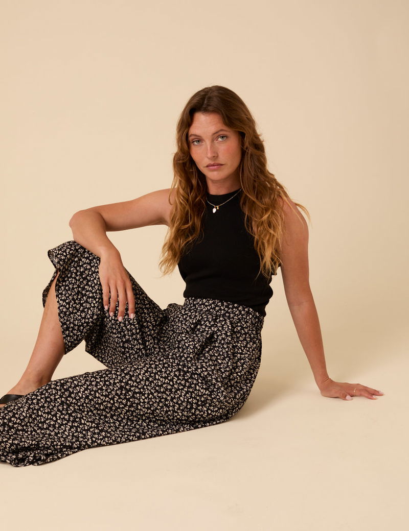 Black Floral Cropped Zeena Trousers