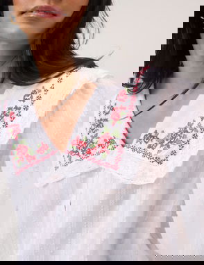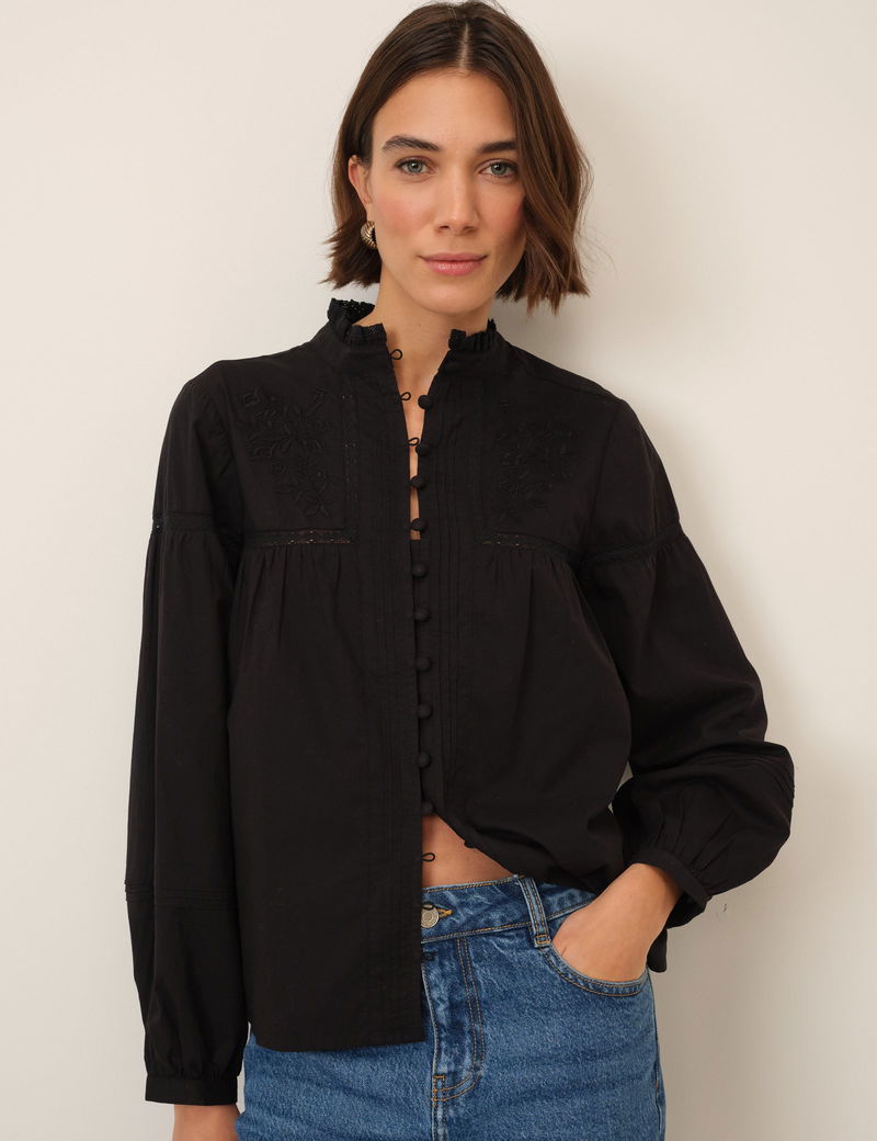 Black Floral Embroidered High Neck Blouse