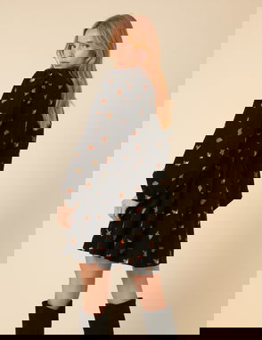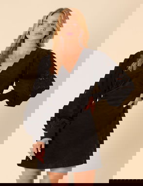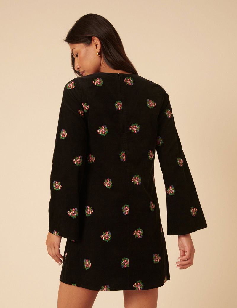 Black Floral Embroidered Saravejo Cord Mini Dess
