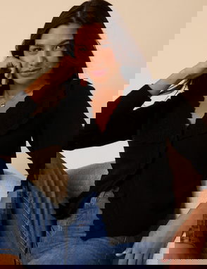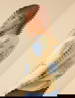 Coming in vintage florals, this knitted cardigan features a V-neckline, long sleeves and pearlescent buttons. Cut to a slim fit, it's finished with soft ribbed trims.