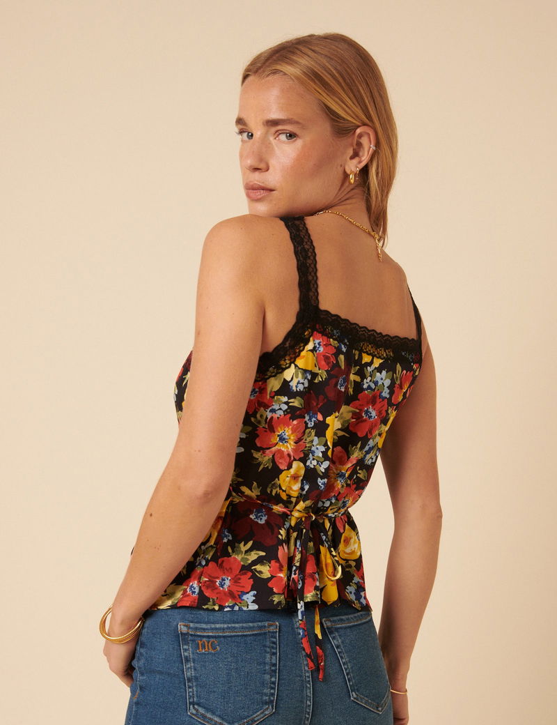 Black Floral Lace Trim Cami Top