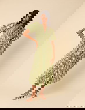 Your ultimate summer midi dress. Coming in black and white gingham, our Charlie dress features a round neck and statement shirring for the perfect fit. She falls to a tiered skirt with pockets.