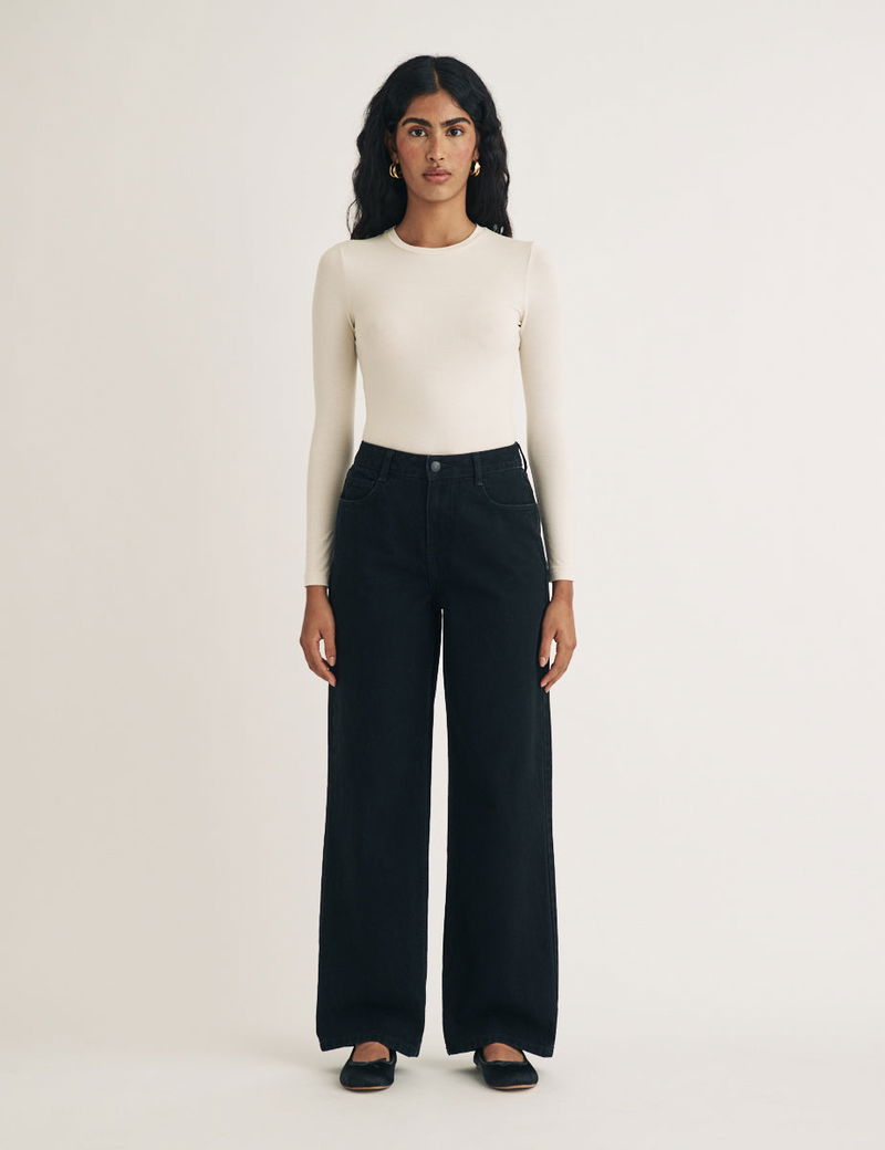 Black High Rise Wide Leg Jeans