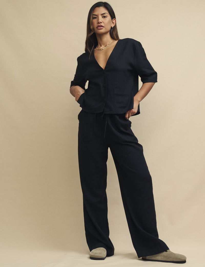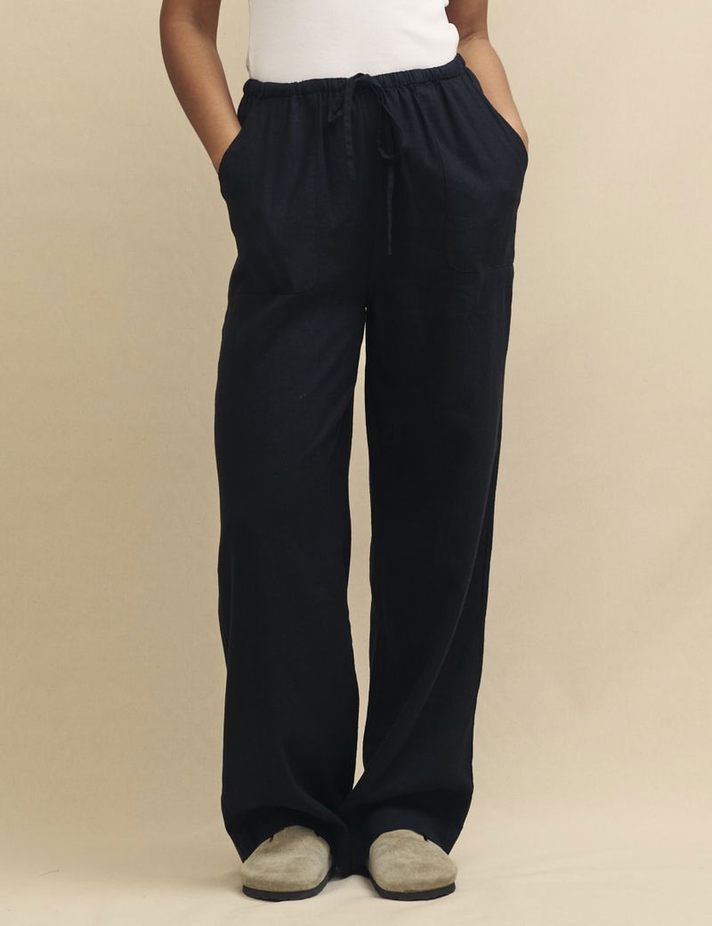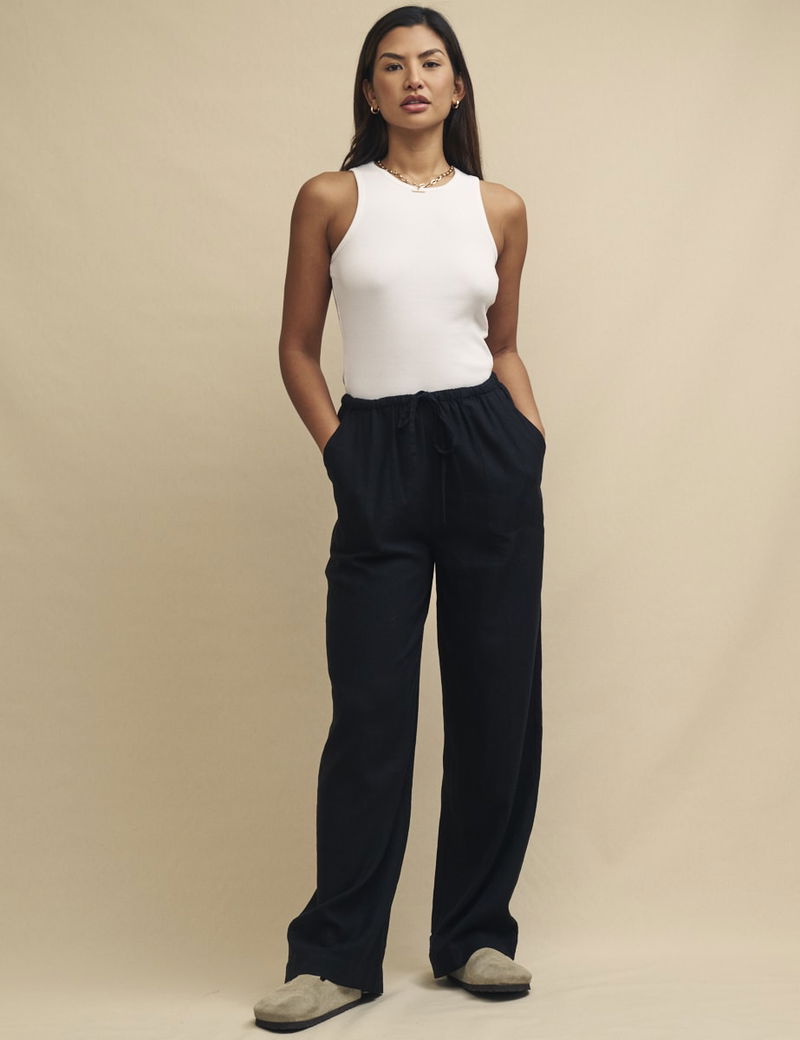 Black Linen-blend Drawstring Trousers