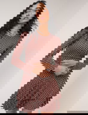 Crafted from soft jersey, this black mini dress features a round neckline and long sleeves. With flattering ruching, the slim-fit bodice is shaped by the drop waist before falling to a tiered skirt.
