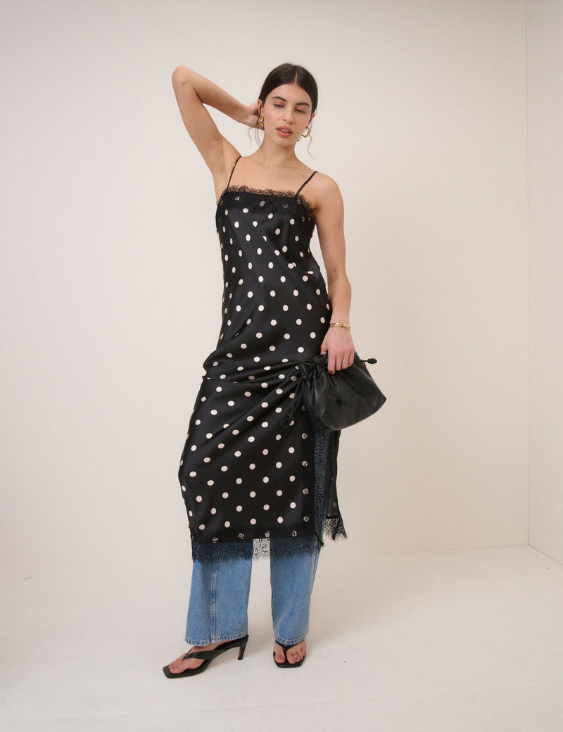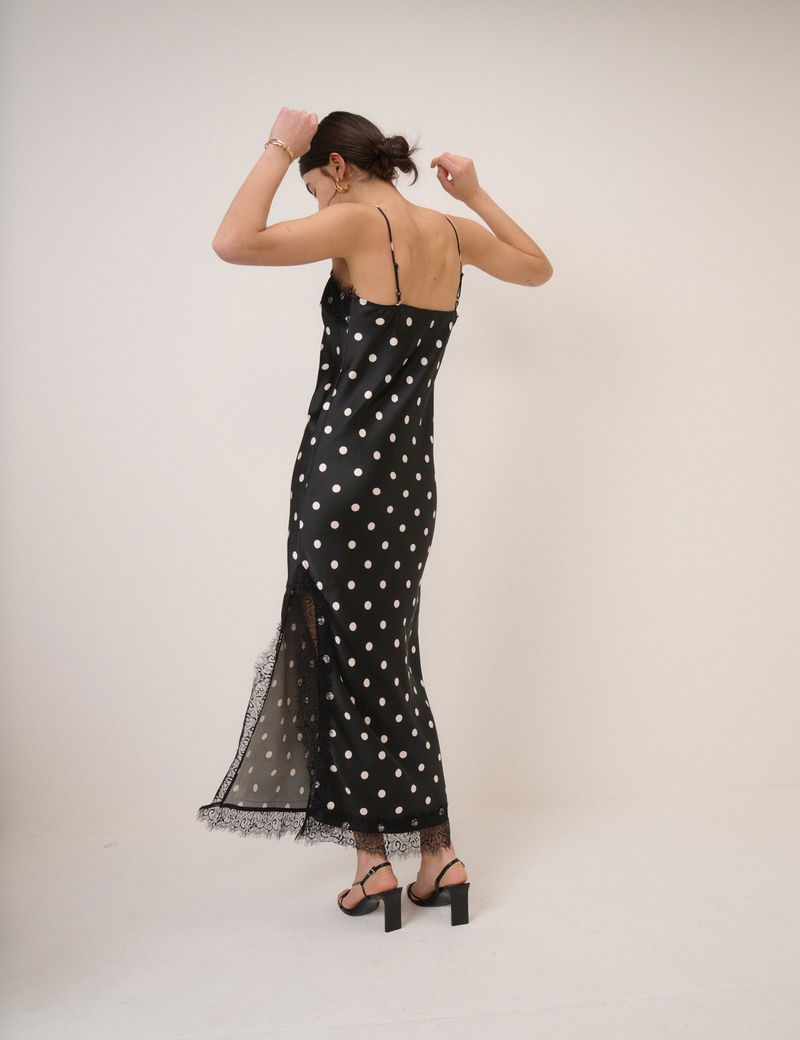 Black Polka Dot Betsie Lace Trim Midi Dress