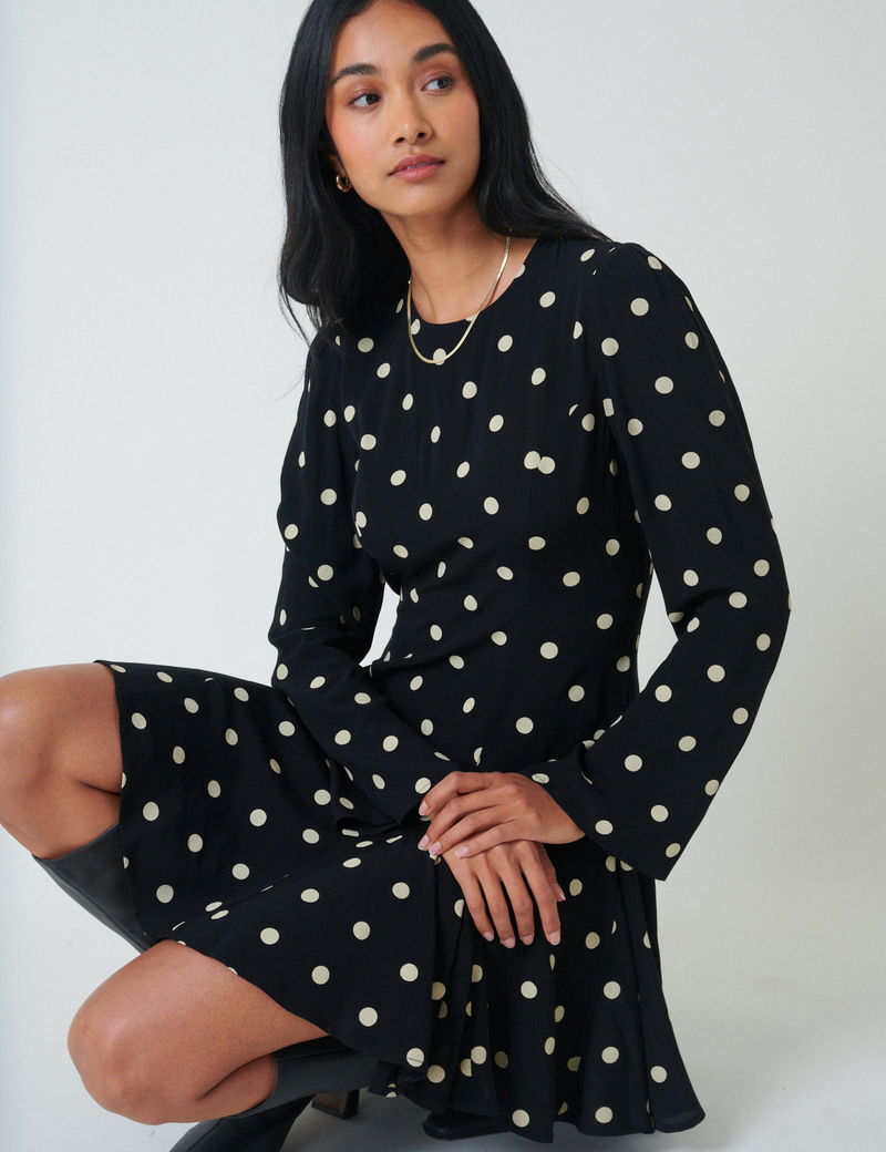 Black Polka Dot Long Sleeve Paris Mini Dress