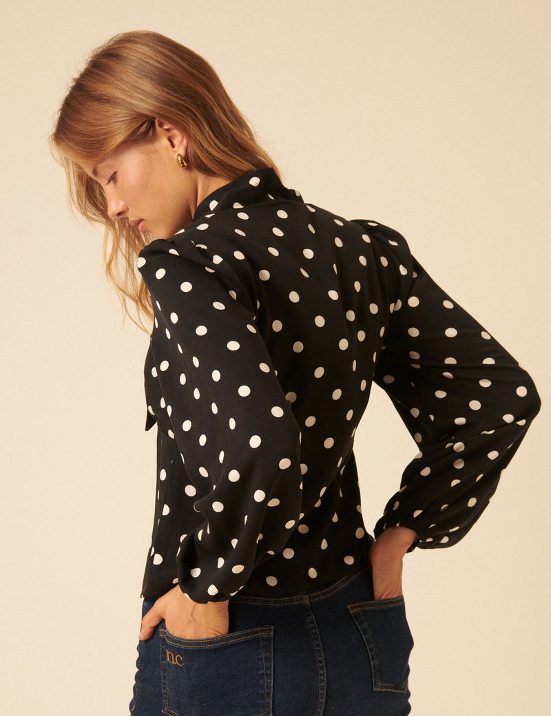 Black Polka Dot Neck Tie Blouse
