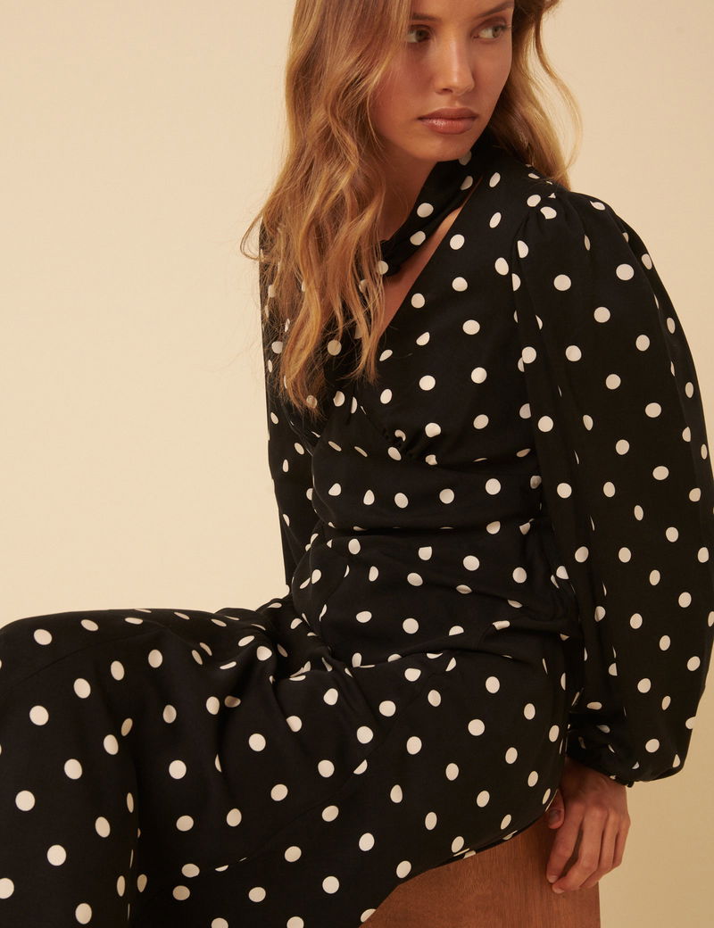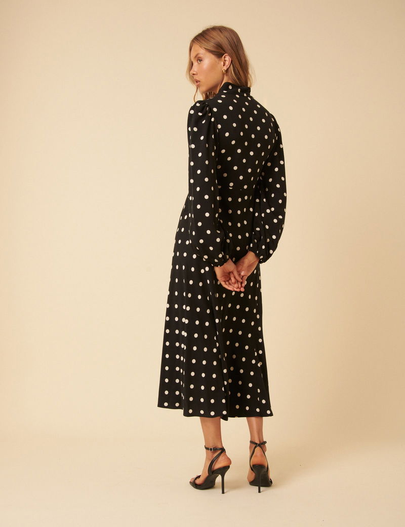Black Polka Dot Neck Tie Sadie Midi Dress