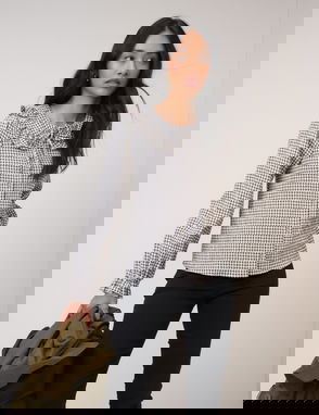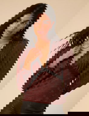 Made from satin, this black and white polka dot top features a long neck scarf. It's cut to a relaxed fit with a sleek, silky feel.