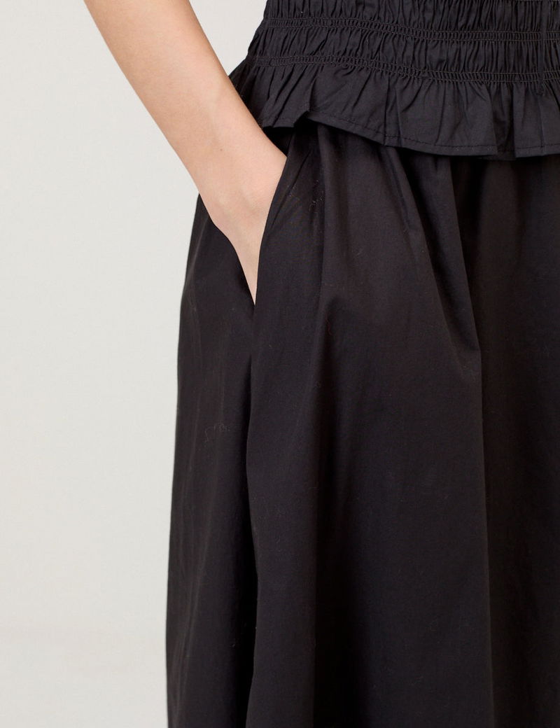 Black Poplin Midi Skirt